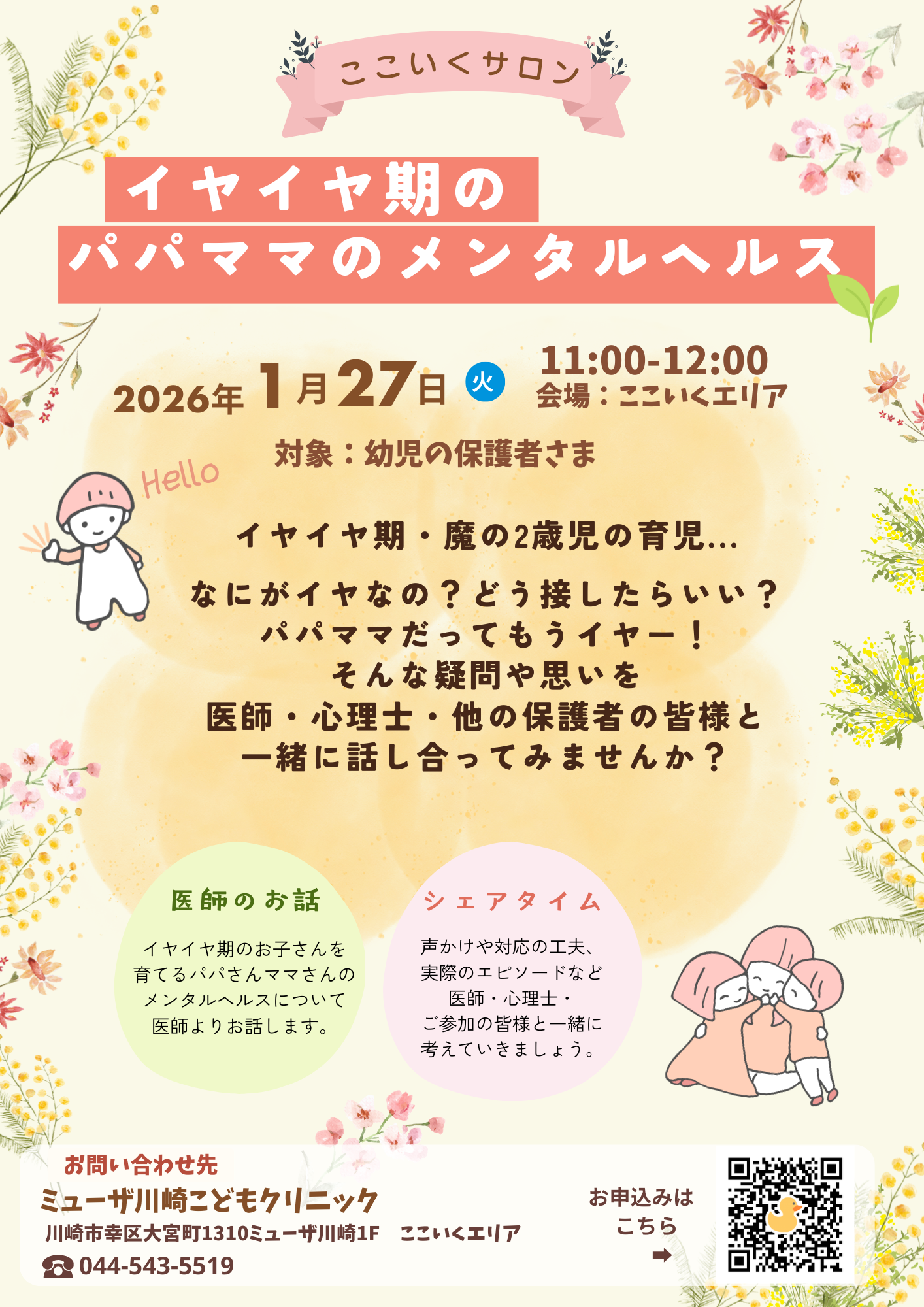 1月ここいくサロン「いやいや期のパパママのメンタルヘルス」のお知らせ🍀